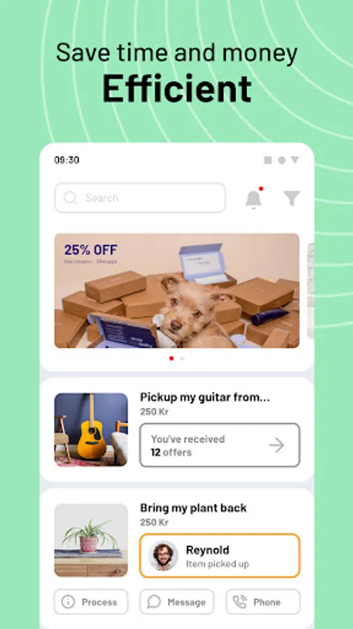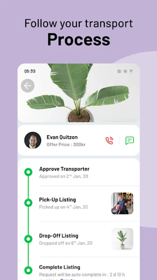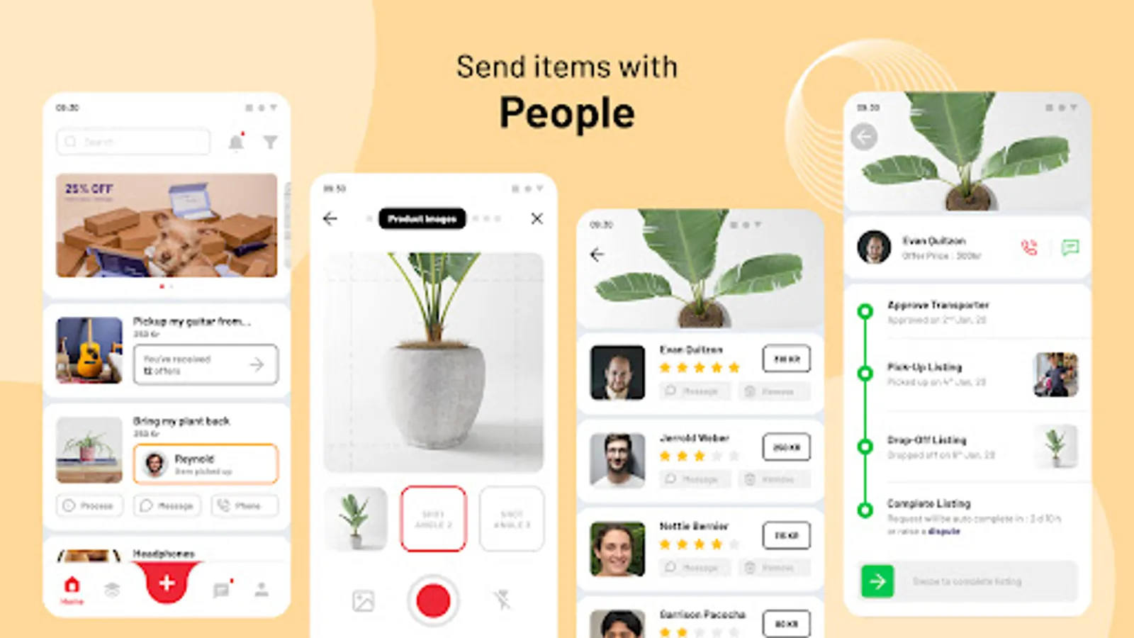 You create your transport listing for the thing(s) you want to send and set your desired price. Then you get in direct contact with transporters where you can choose the one that suits you best. You will be updated by your transporter throughout the process of pick-up and delivery photos. After the transport, you can both rate each other to keep a high standard and good user experience together.