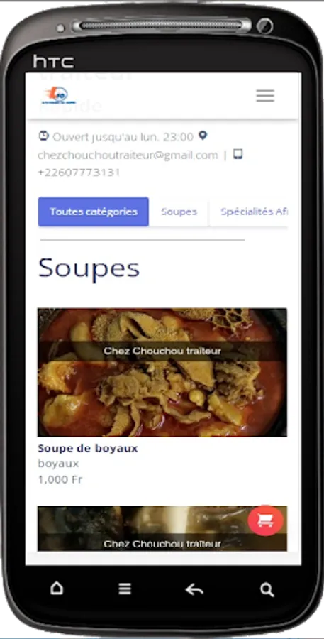 Choose from the displayed items. If there is an option (in the case of restaurants) to add products or sauce, for example pizza, you will be prompted for your choice right after clicking on the item. Your order will be displayed on the right side of the page.