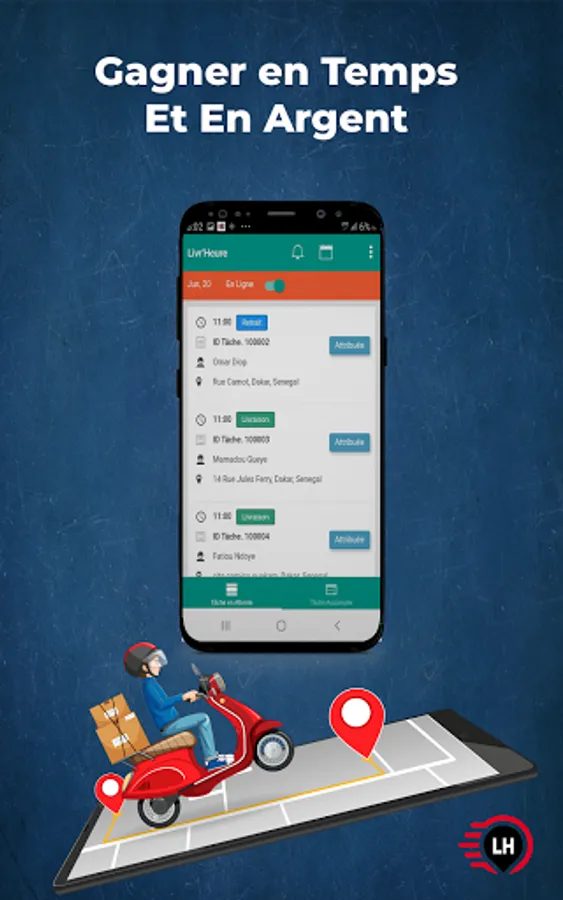 You no longer need to contact restaurants or pharmacies or even individuals to ensure their deliveries, Livr'Heure sends you all delivery requests in real time wherever you are. This application saves you a lot of time and a lot of money!
