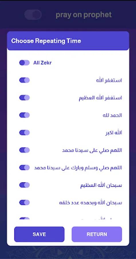 Moisturize your tongue in remembrance of God with a program of prayers on the Prophet Muhammad that reminds you to pray for the prophets and messengers and an accurate voice reminder of the time you set