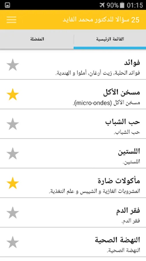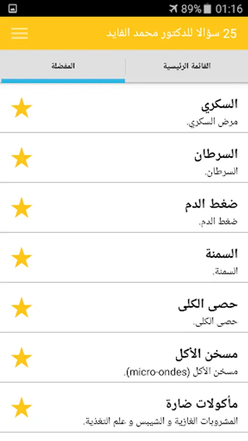 The application provides valuable guidance and useful advice from Dr. Mohamed Al Fayed -Mohamed Faid- specialist in nutrition and food industries. The benefits of the application contains a number of dishes and food tips for patients with a number of common diseases, as well as tips and general guidance.
