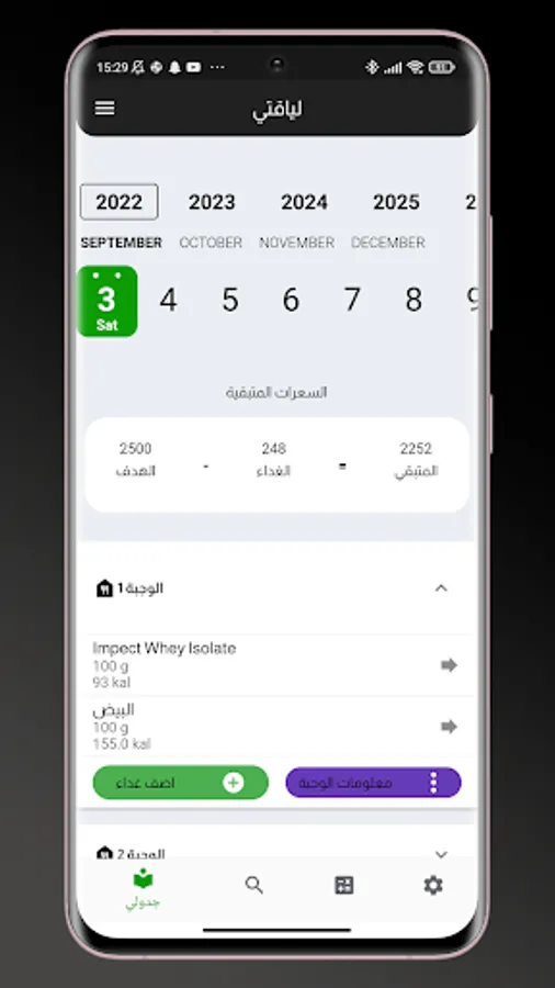 The application provides you with ease in calculating your consumed calories during your day and also provides you with a calculator to calculate your calorie needs according to your daily activity goal