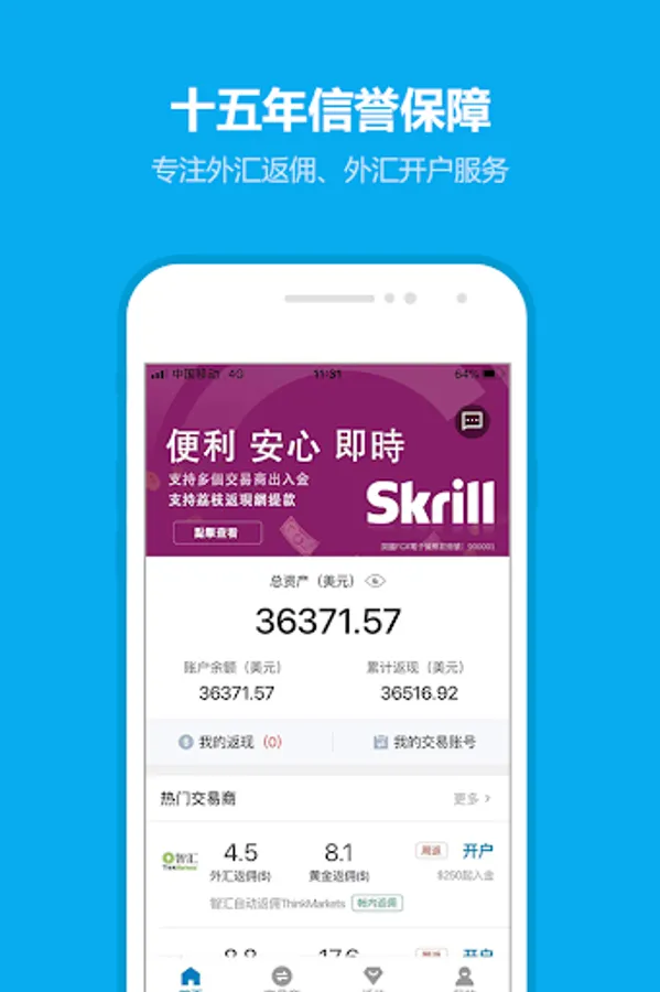 [Authoritative and professional] 15-year credit brand guarantee, recognized as the industry's most authoritative foreign exchange cashback platform