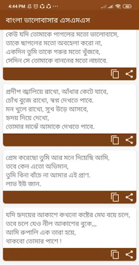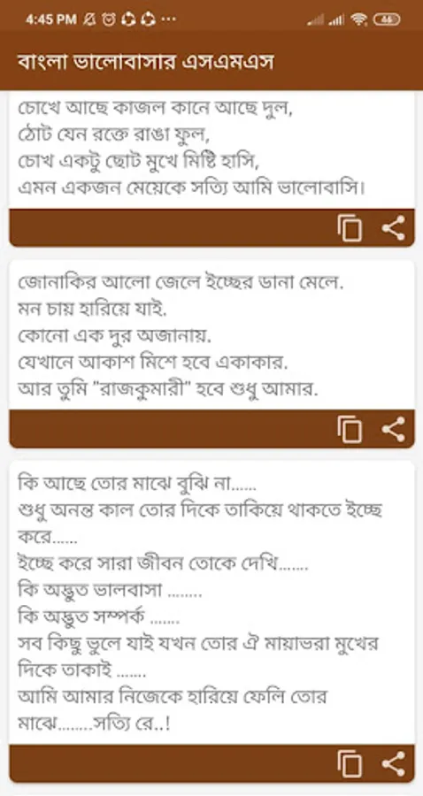 Love SMS comes in everyone's life. The status of love received or given by the person of love is very beautiful and lively. With Bangla SMS, you can share love status, famous quotes with your loved ones.