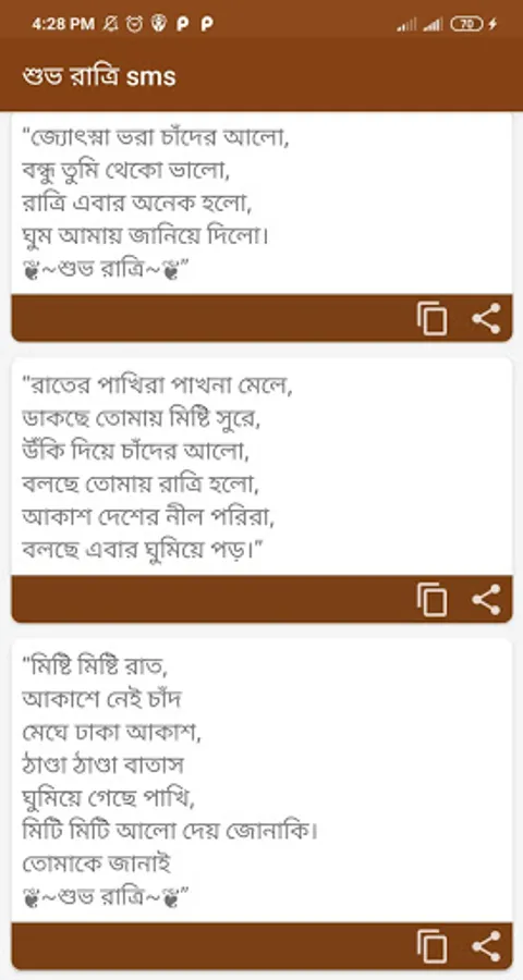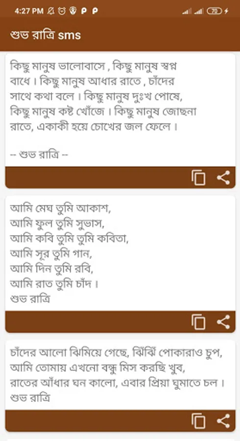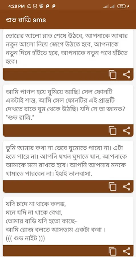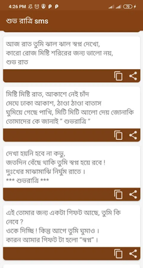 Good night sms has been added with some romantic love sms, troubles, miss sms. You may feel hesitant to tell your loved one the things that are on your mind at night with your loved one. This app is basically arranged with all the emotional words of your mind. Good night status has also been given.