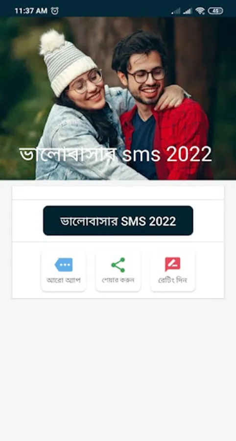 Love SMS 2022 app contains love crazy sms 2022. There are many love poems, love words, romantic love, love status, Premer Ukhti, Valobashar Sms in romantic love sms which you can definitely use to make your love man happy.