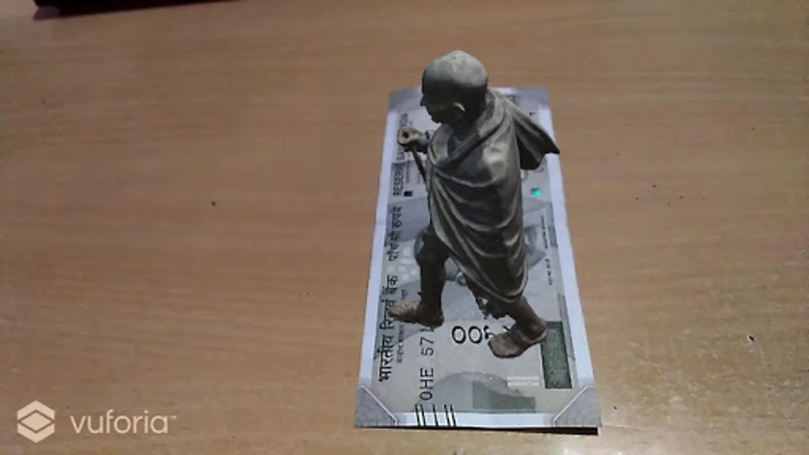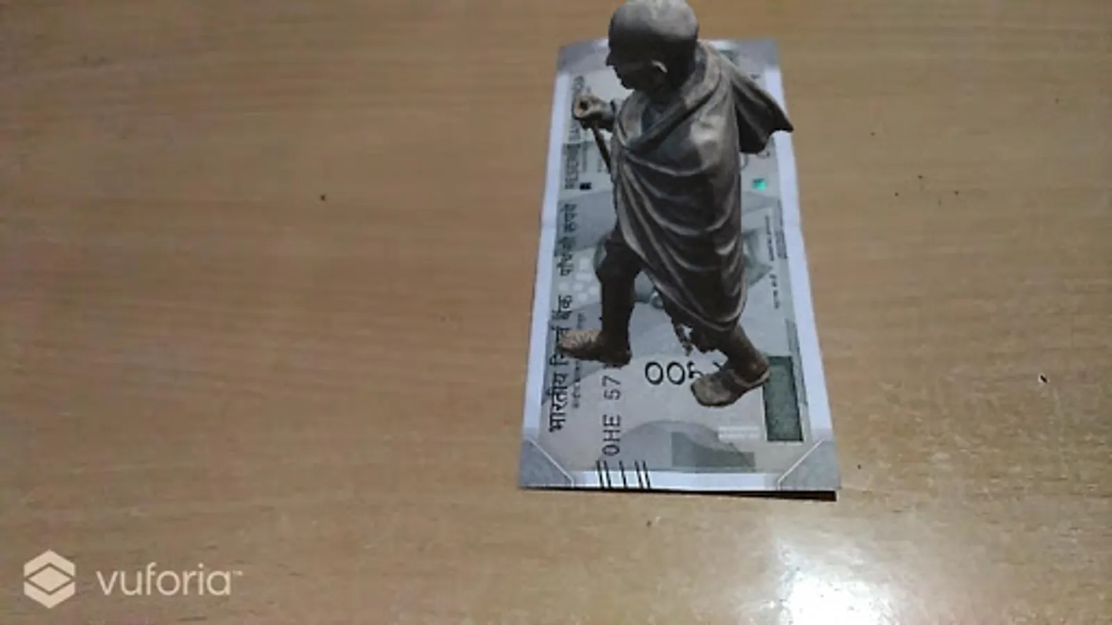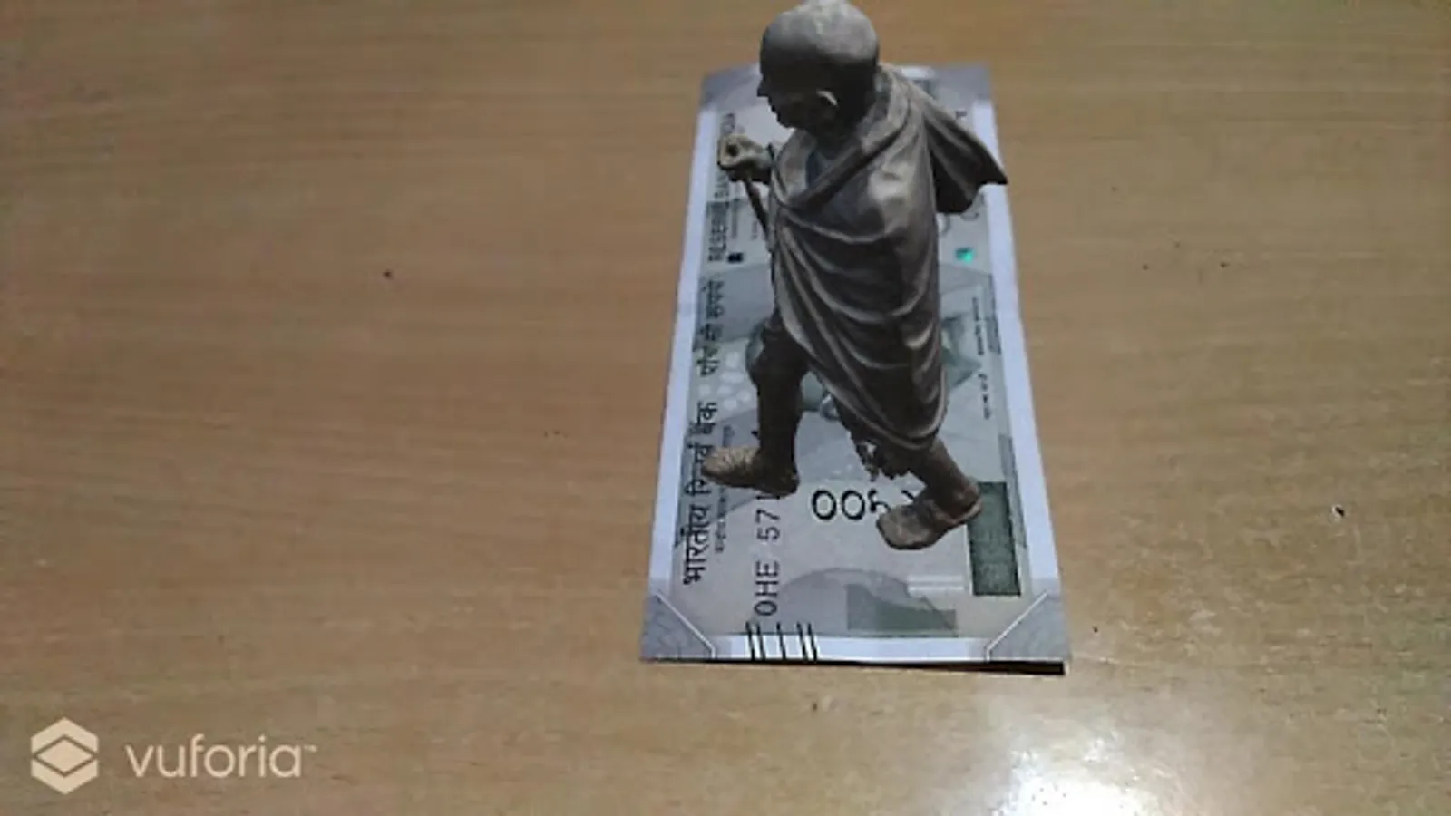 Just open the app and place any Indian currency (2000,500,200,100,50,10,5) note in front of the camera and it will show the 3D model of Mahatma Gandhi standing.