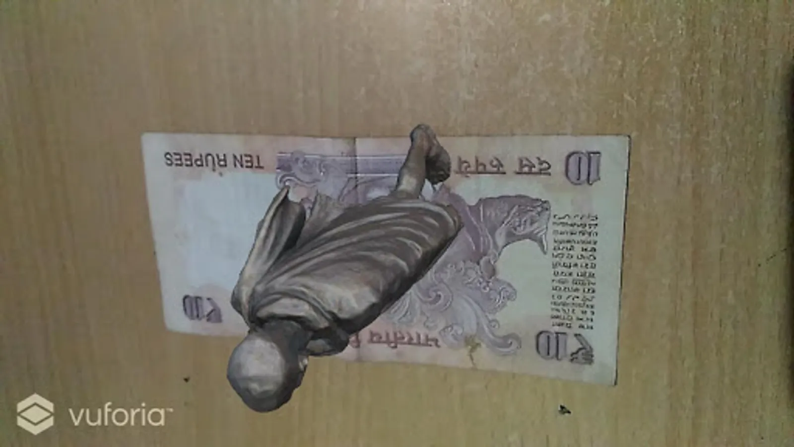 That is it places a 3D model of Mahatma Gandhi on top of the note.You could view the 3D model of Mahatma Gandhi on your smartphone screen.It works for all Indian notes.