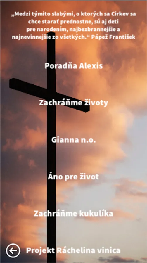 It brings insight into the life of Saints. Giany Berets Molla, Agata and others. The application also includes basic information about supporting pro-life projects.