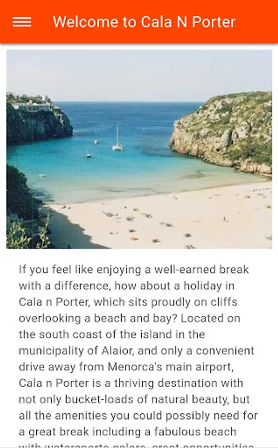 An incredibly useful, advert free travel app for Cala N Porter in Menorca