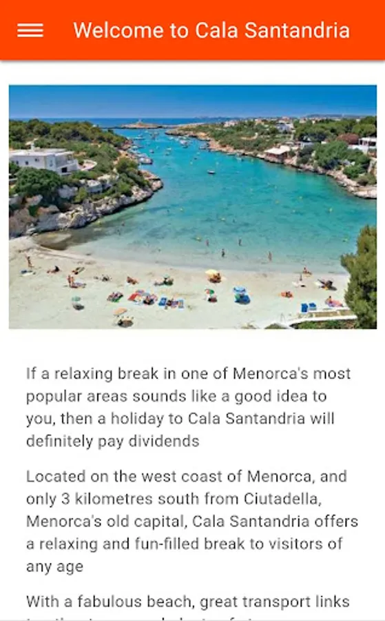 An incredibly useful, advert free travel app for Cala Santandria in Menorca