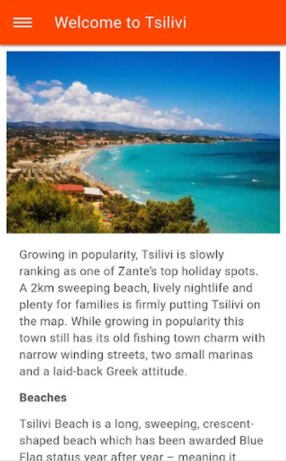 An incredibly useful, advert free travel app for Tsilivi in Zante