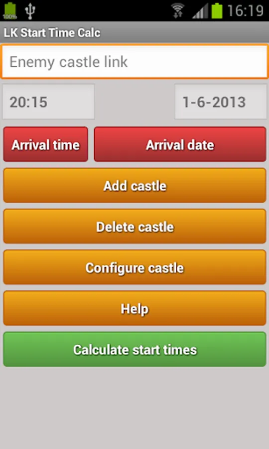 This app calculates starting times for attacks and defence bridges on castles in the game Lords and Knights.