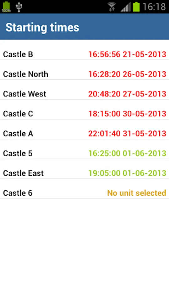For every own castle the starting time of the troops will be calculated and presented clearly.