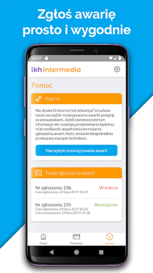 Convenient failure reporting and LKH Intermedia account management in your pocket!