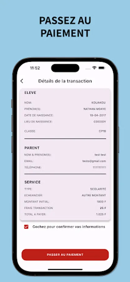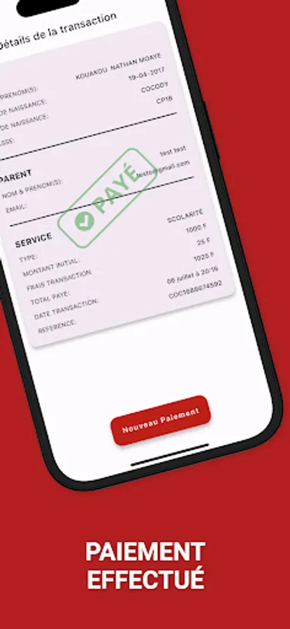Coccinelle-Pay is a practical and secure tool that allows parents and students to easily manage the process of paying school fees. It offers a smooth and user-friendly experience for making online transactions with ease. With our app, you can make payments with just a few clicks, access payment history, receive notifications and stay up to date on information related to school fees. Simplify your school life by using our school fee payment app, designed to give you convenience, security and peace of mind.