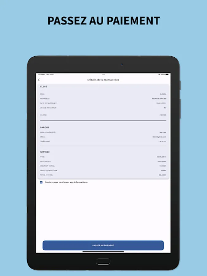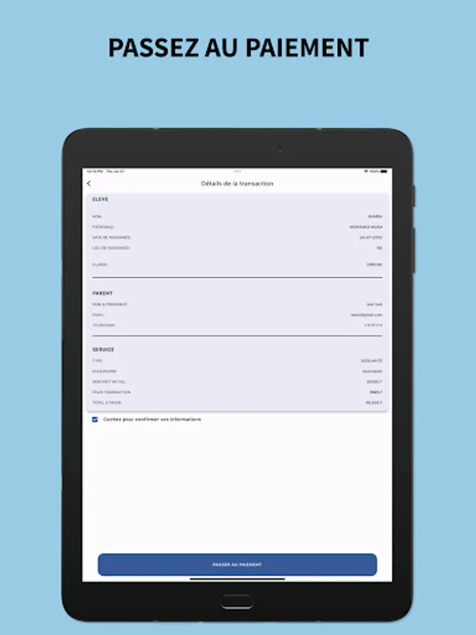 The SOURCEDEVIE-PAY school fee payment app is a convenient and secure tool that allows parents and students to easily manage the school fee payment process. It offers a smooth and user-friendly experience for making online transactions with ease. With our app, you can make payments with just a few clicks, access payment history, receive notifications and stay up to date on information related to school fees. Simplify your school life by using our school fee payment app, designed to give you convenience, security and peace of mind.