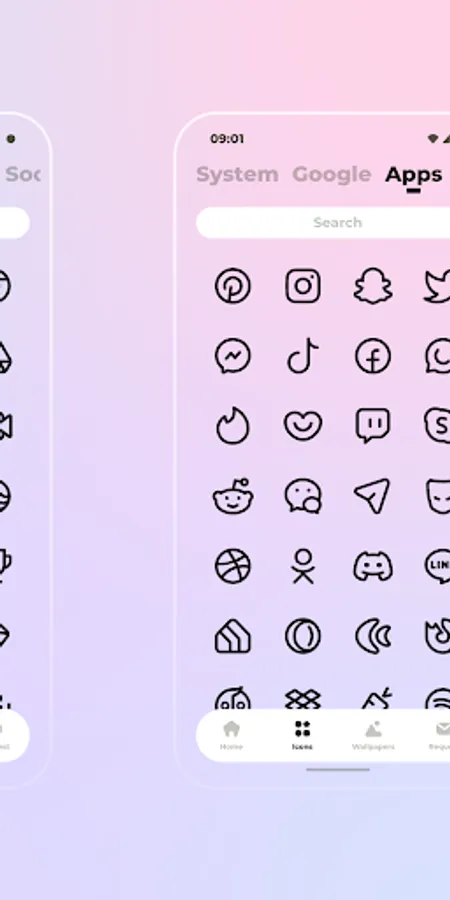 2. Open NYON LIGHT, go to Apply section and Select Launcher to apply. If your launcher is not in a list make sure you apply it from your launcher settings