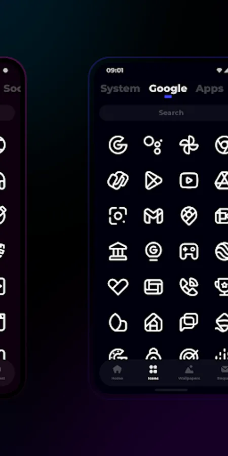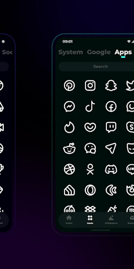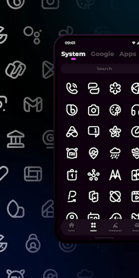 2. Open NYON LIGHT, go to Apply section and Select Launcher to apply. If your launcher is not in a list make sure you apply it from your launcher settings