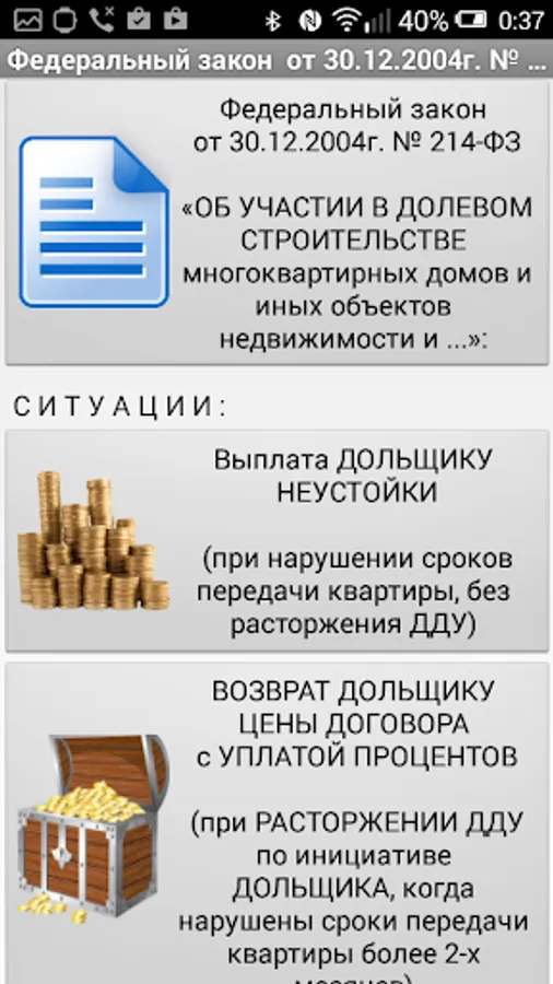 1. The text of the Federal Law of December 30, 2004 No. 214-ФЗ "On participation in shared construction of apartment buildings and other real estate and on amendments to certain legislative acts of the Russian Federation", which governs the relationship of MINISTER and CONTRACTOR, issues of conclusion and termination of the Agreement on participation in shared construction - DDU, etc .;