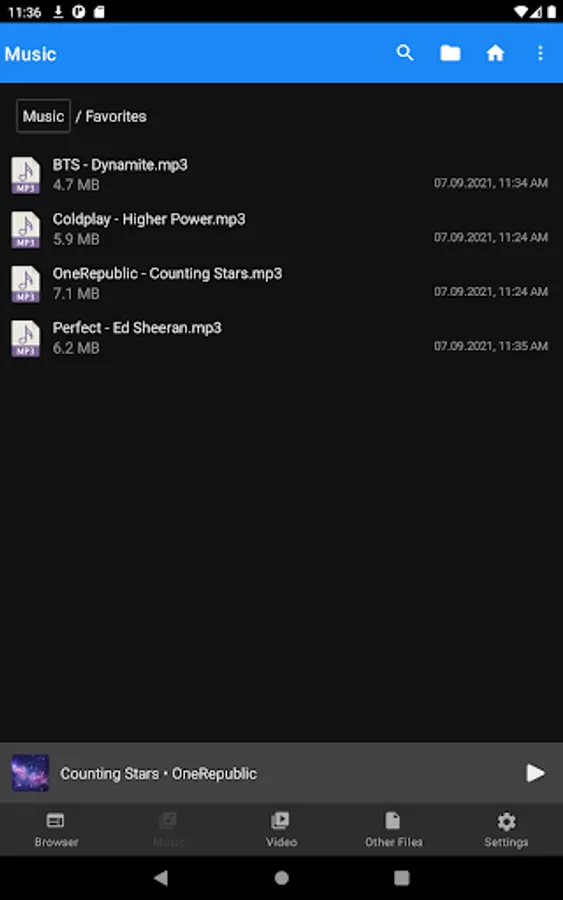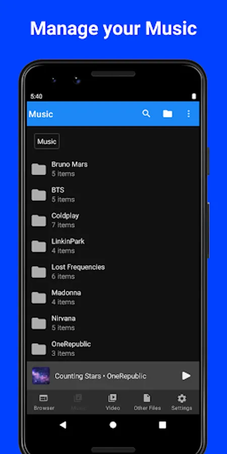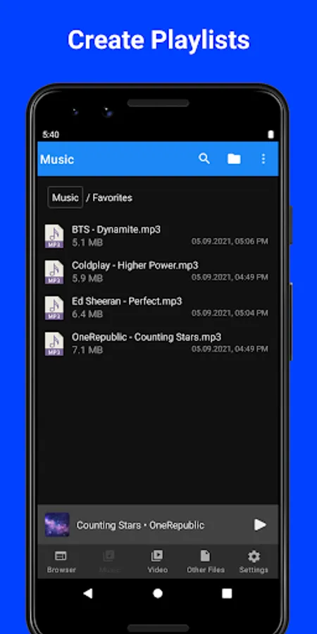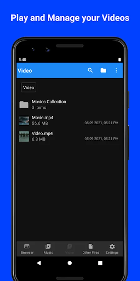 MyMedia is a powerful download and file manager that enables you to play music and videos offline. You can download files, play, manage, organize and export them to other apps.