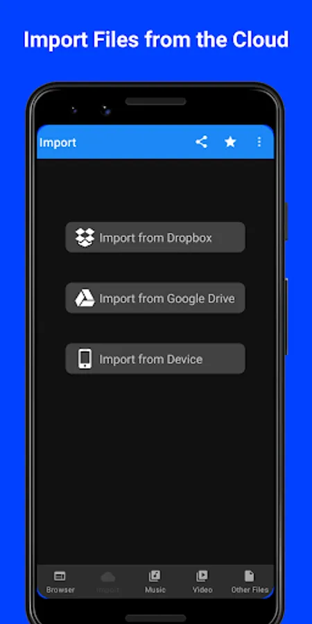 - Download from the Browser and Cloud providers such as Google Drive and Dropbox.