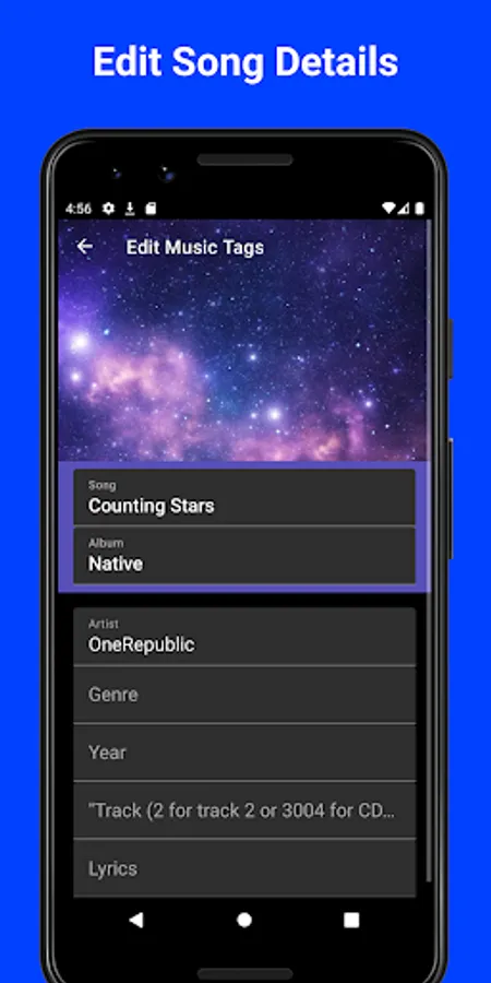 - Edit audio tags such as title, artist, album name, album cover, genre and lyrics.