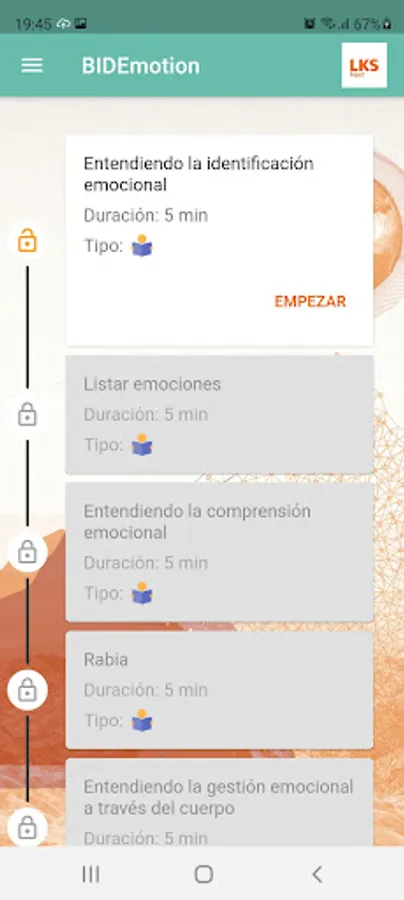 Through an initial questionnaire the users will have an individualized itinerary where they will be proposed personalized practices-activities to train the competence of emotional management.