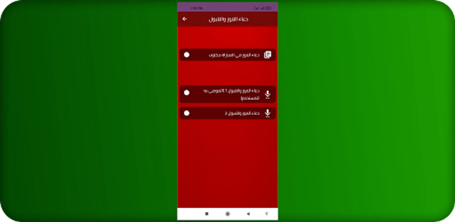 يمكنك التنقل بين أزرار تطبيق دعاء الفوز والقبول بسهولة