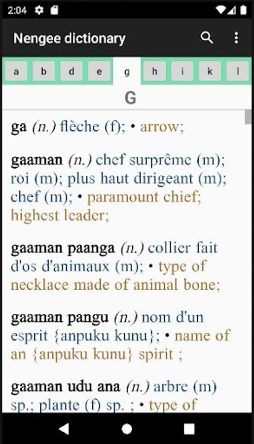 Dictionary of more than 4600 words in Nengee from Guyana translated into French and English, with examples and some images.