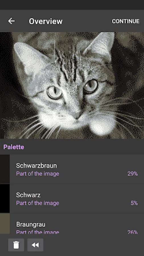 Different filters make it also possible to customize your color motif so that it pleases you and help you to choose the colors so that you have to buy as little as possible different wool colors while the picture still looks good.