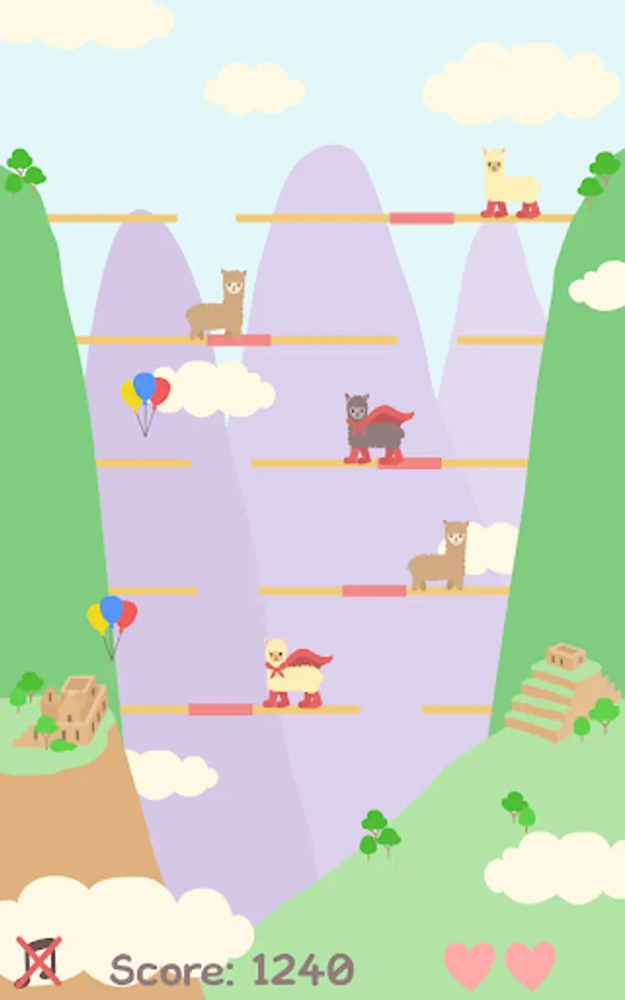 If the alpacas clear the bottom bridge, they will reward you with balloons.
