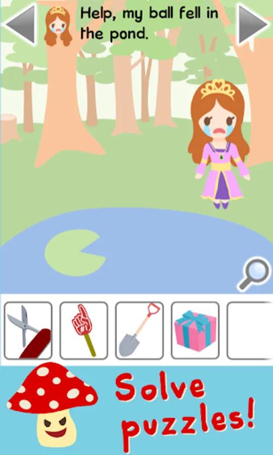 Escape Games Frog Prince is one of the cutest point and click adventure games. Meet cute characters such as a talking baby mushroom and a garden gnome! There's a handsome prince and a bratty princess! A wise king and a foodie panda! What?!! Why is there a panda in Grimms' fairy tale...?!? Play Escape Games Frog Prince to find out!