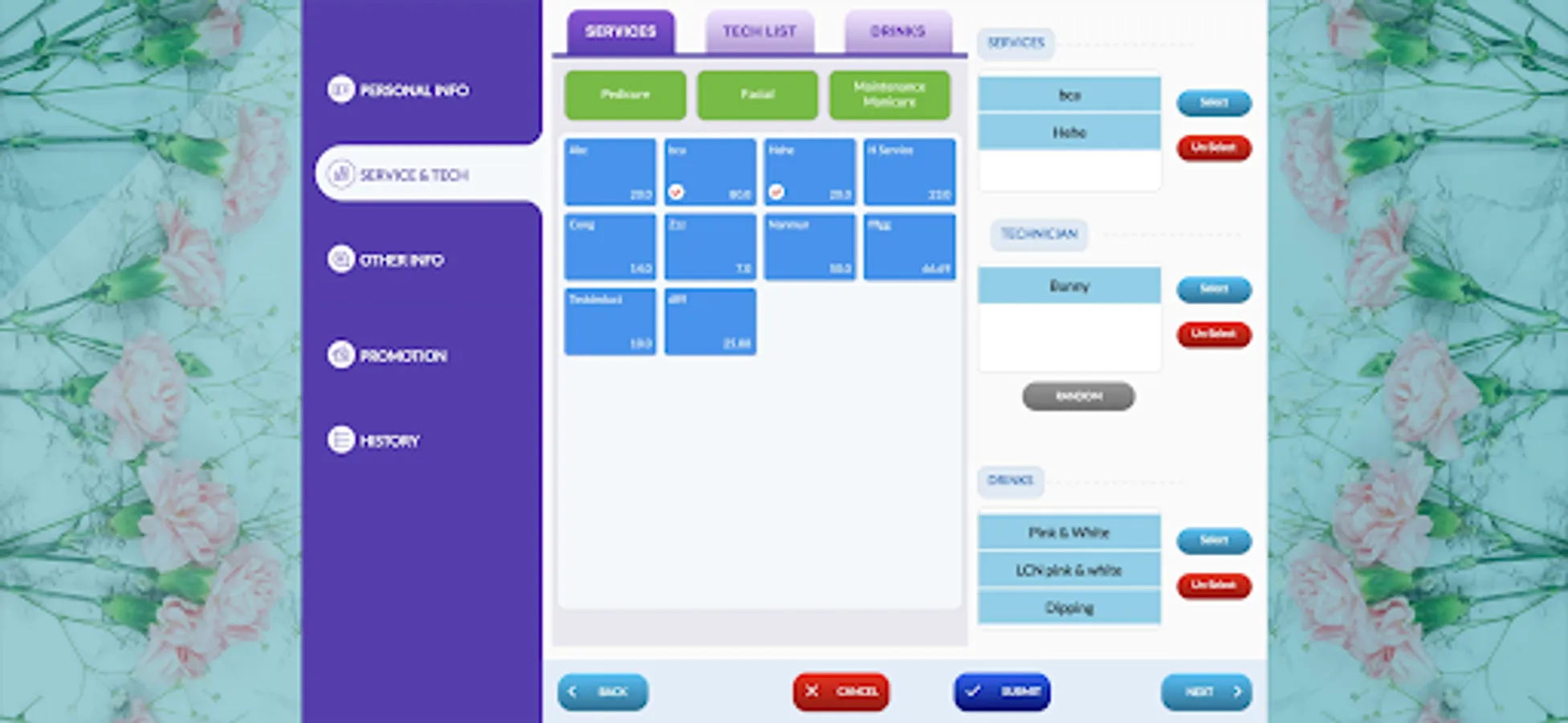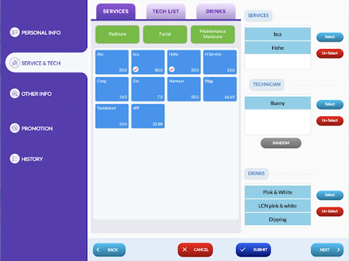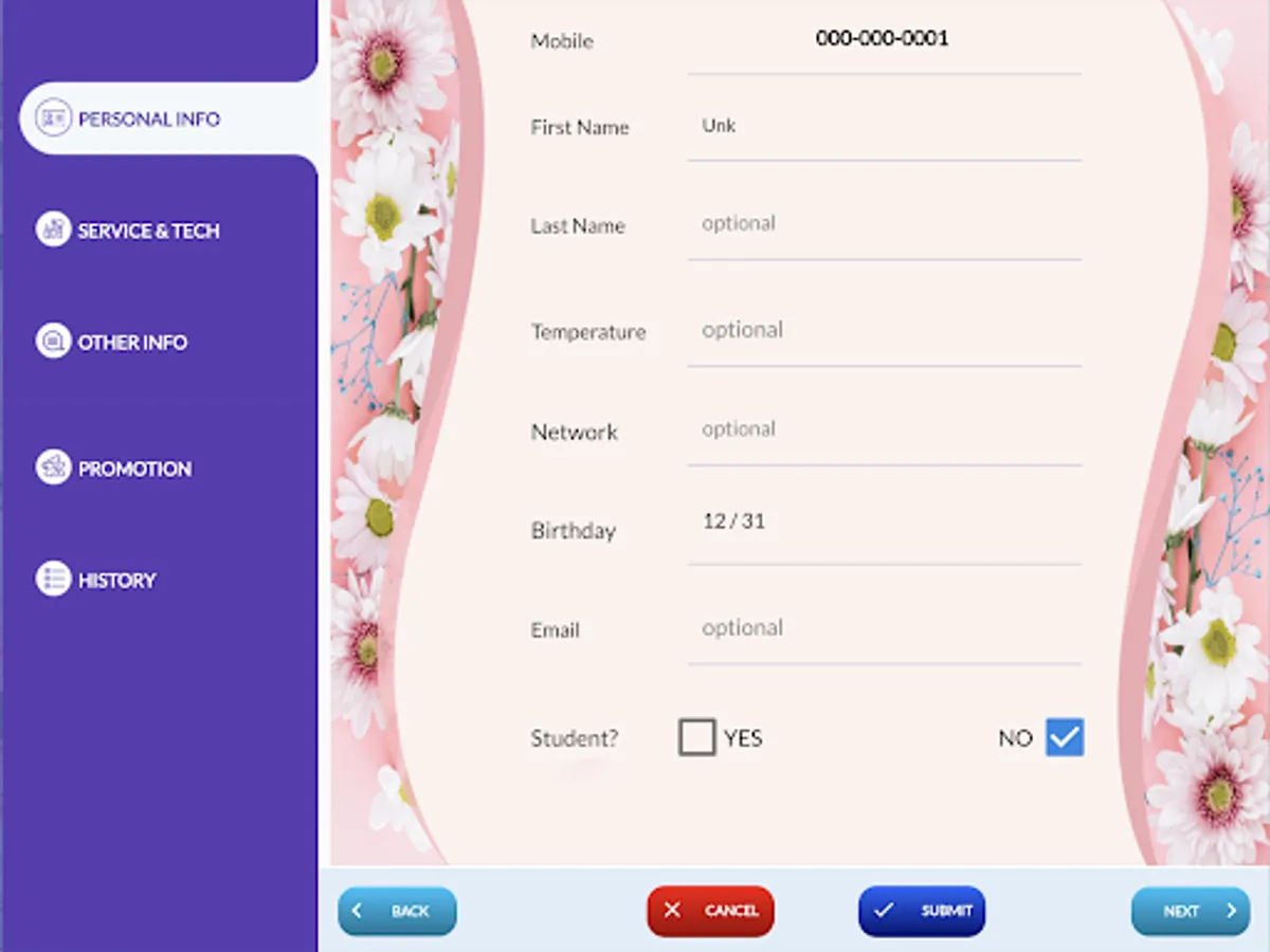 eCheck-in application is an add-on tool to our salon management solution, used to sign in customers with Fire Tablet devices. Instead of traditional paper check-in method, salons now can use Fire Tablets to collect their customer information, ranging from personal info such as name, mobile, email… to service preferences like types of service request, technician selections. Our check-in app allows the salon owners to set entry fields as required or optional, based on salon preference or demands. Since it is designed as a self-check in, the customers can take a glimpse at any available promo offered while registering as well as reviewing their usages record prior to making decision for their current service selections, if necessary.