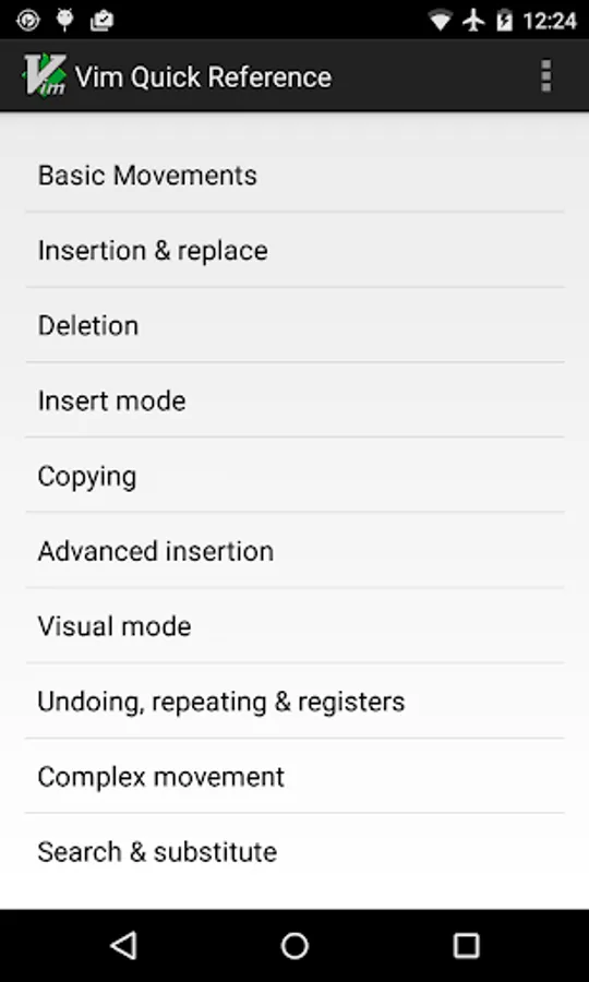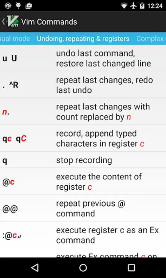 A handy command reference for Vim. Download this app to have Vim commands at your fingertips!
