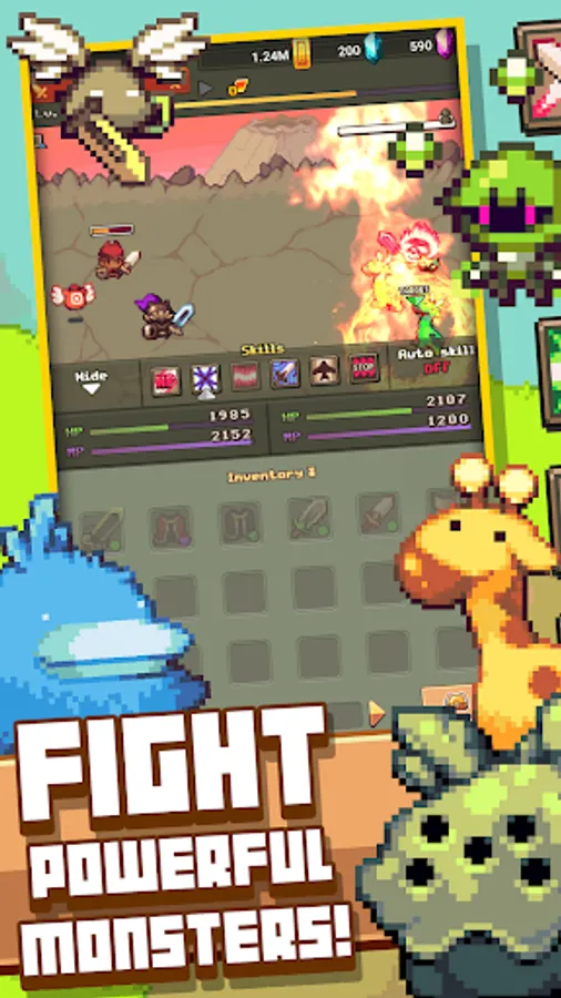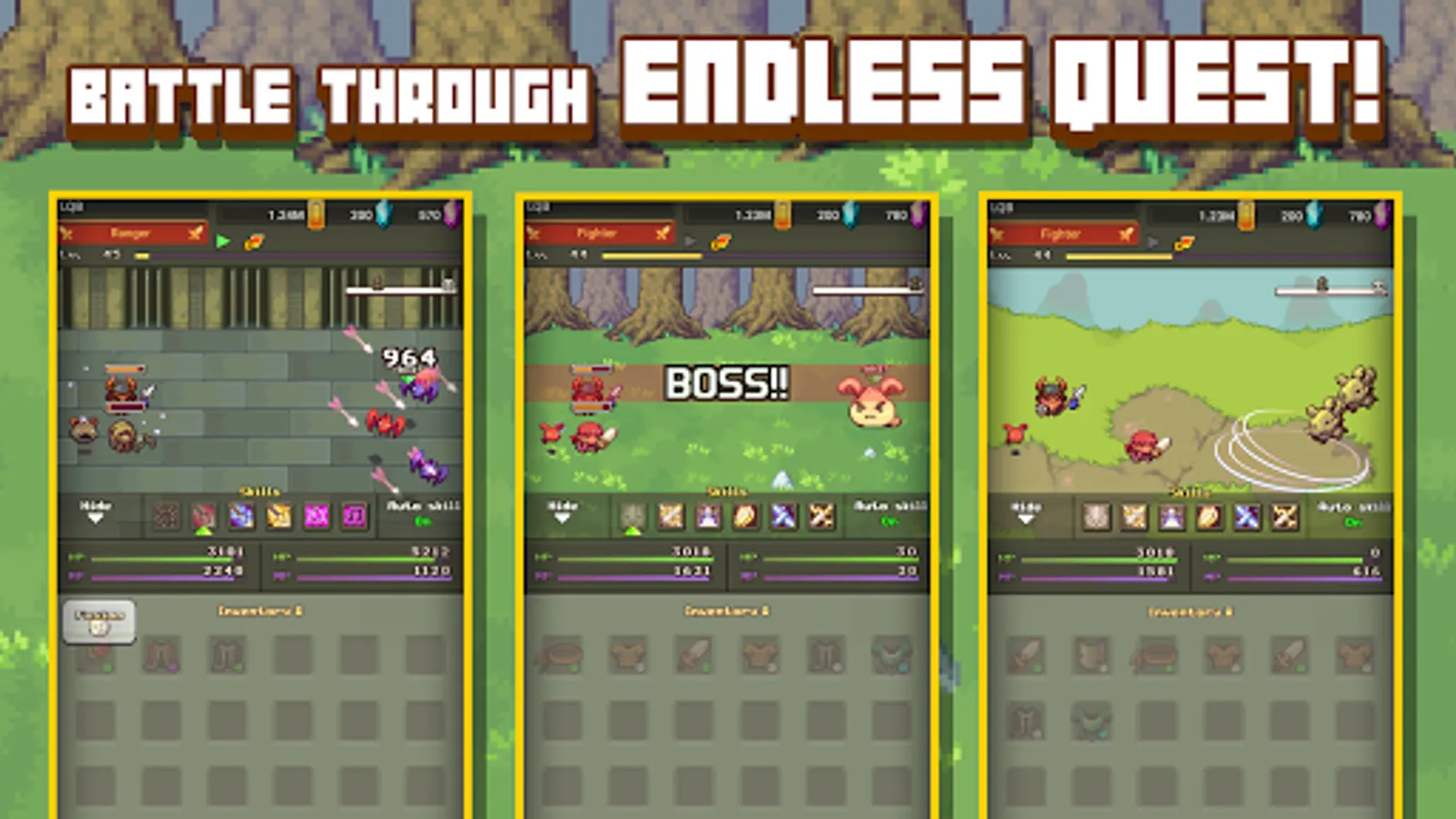 This dungeon crawler will pits you against colossal quests of epic proportions. You’ll have to battle monsters, upgrade hero equipment & incremental skills and form a party of heroes to crawl deeper into perilous dungeons packed with loot. Upgrade and equip your idle hero to find treasure on your pixel quest, making sure your hero has enough gear, health and items to protect them from a quest quagmire.
