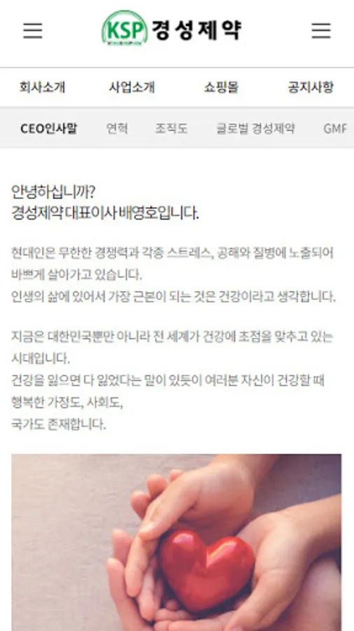 This is the mobile homepage of Kyungsung Pharmaceutical Co., Ltd.