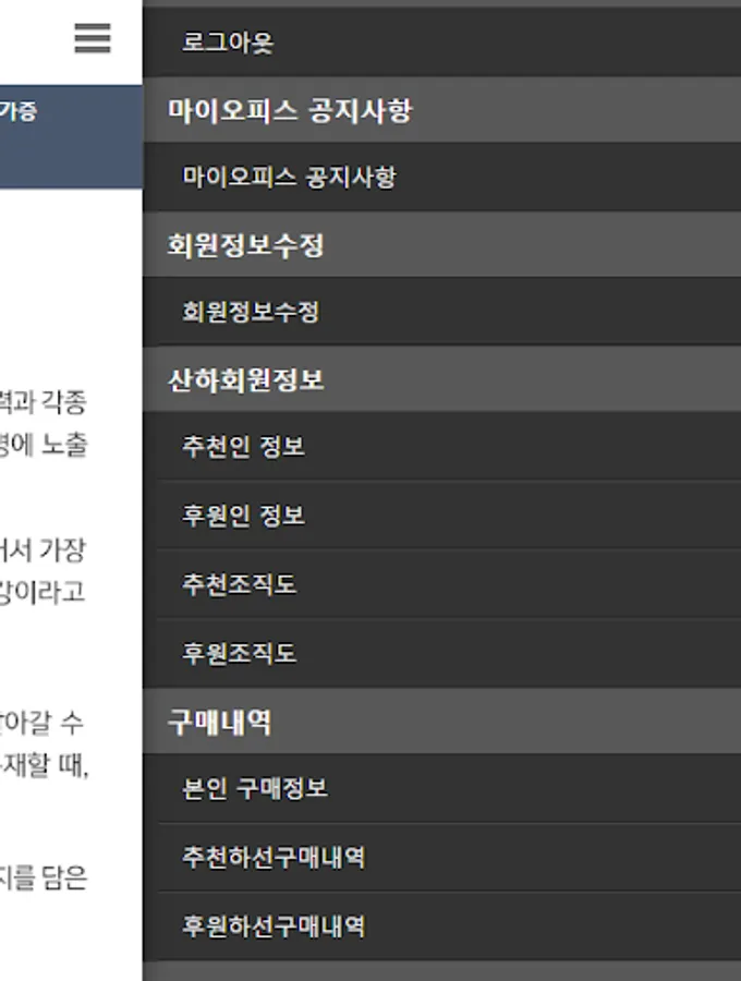 - My Office (member information, affiliated member information, purchase history, purchase history, etc.)