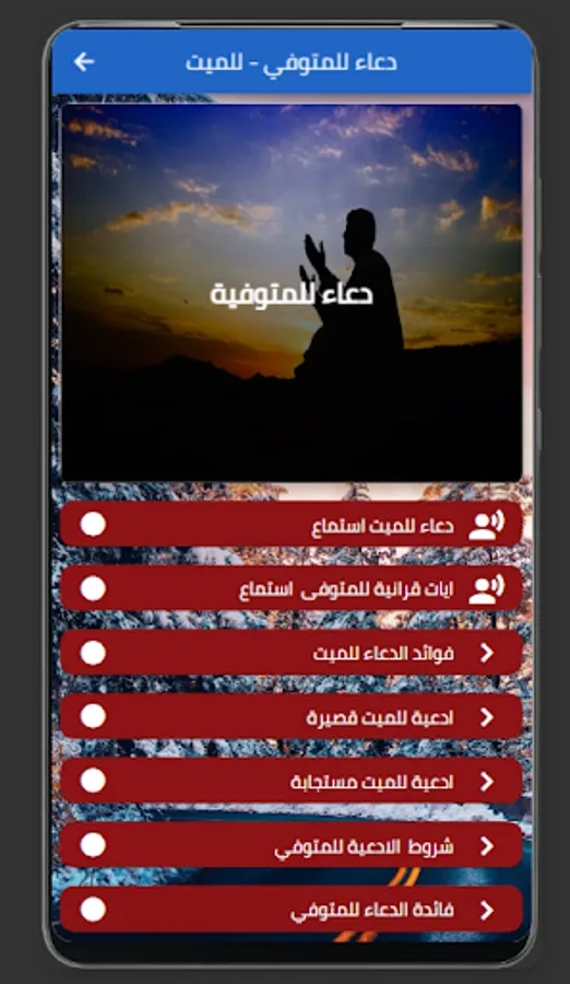"Dua for the deceased - for the deceased" is an application that helps users to pray for the spirits of the dead and the deceased, and to show mercy and sympathy for them. The application includes a set of supplications and supplications that the user can use to pray for the dead, and relieve the pain and sadness felt by relatives and friends.