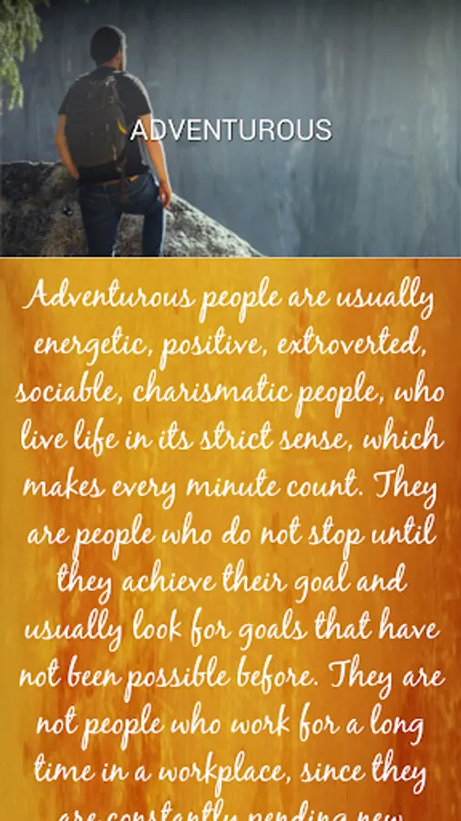 The application also describes the 12 differentiated and detailed personalities with their strengths, weaknesses, how they are perceived by others, how their social and work relations are, how they face the future, etc.