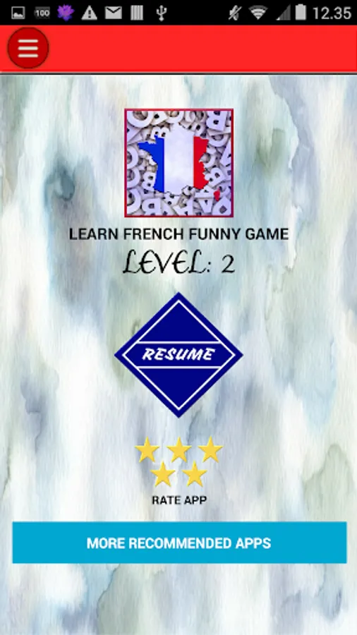 This game allows you to enjoy a fun time and at the same time learn french by guessing the names of the objects or situations that appear in the photo. The game has 10 levels with 10 photos each.