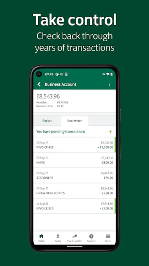 Stay in control of your business accounts on the move. Our app is fast, convenient and safe – keeping your bank details secure at all times.