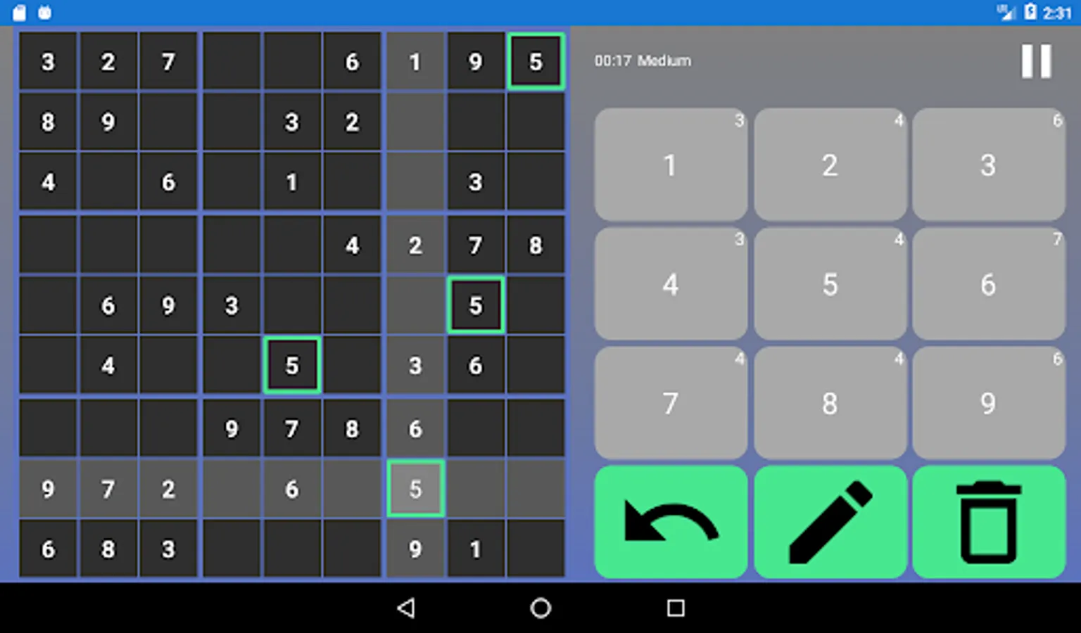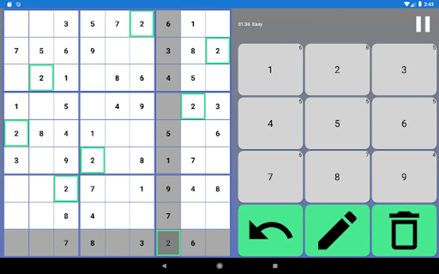 - Sudoku games come in 4 difficulty levels - easy Sudoku, medium Sudoku, hard Sudoku and expert Sudoku- Pencil Mode - Turn on/ off pencil mode as you like- Themes - Use dark mode to protect your eyes- Auto remove notes from all columns, rows and blocks once the number is placed- Unlimited sudoku game undo - Auto-save - Pause the sudoku game and resume the sudoku game without losing any progress- Play sudoku games offline or sudoku online- Top scores- All sudoku puzzle games have one and only one game solution, they are real sudoku grids.You may also find the following free Sudoku app features useful: