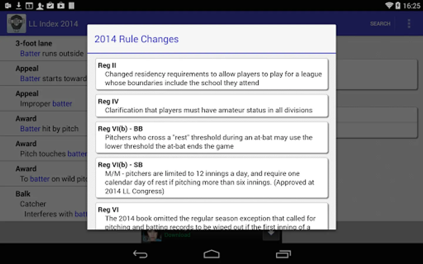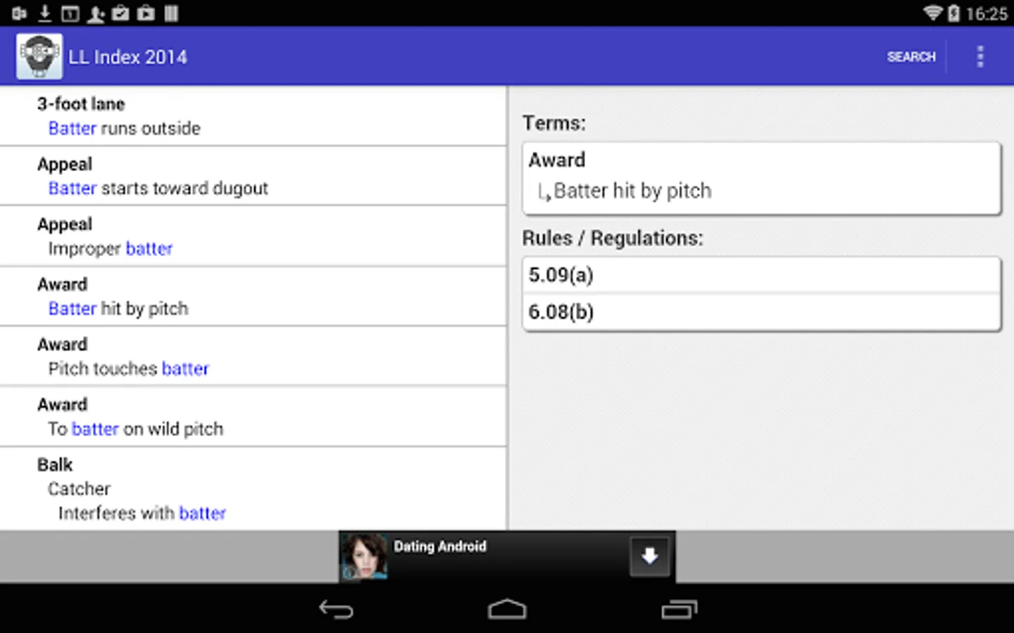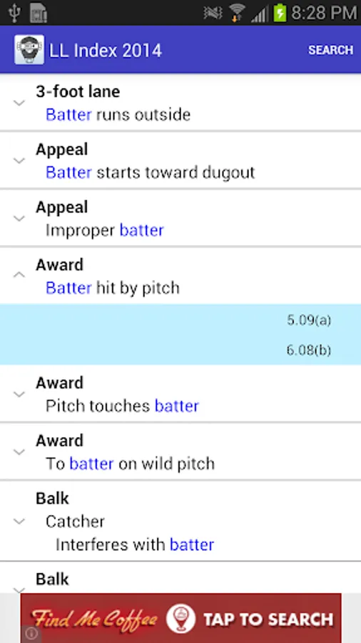 Since 2002, Kevin Hunter has published an index to the Little League rulebooks. This application is a mobile version of the 2014 printed index available through LLUmpires.com. Search the index by keyword or phrase, and obtain a list of the rule(s) and/or regulation(s) that pertain to that particular situation.