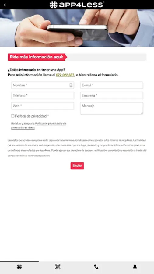 If you are interested in getting more information , ask for a demo or contract any of our services send an email to info@app4less.net and our customer service will be very happy to assist you :)