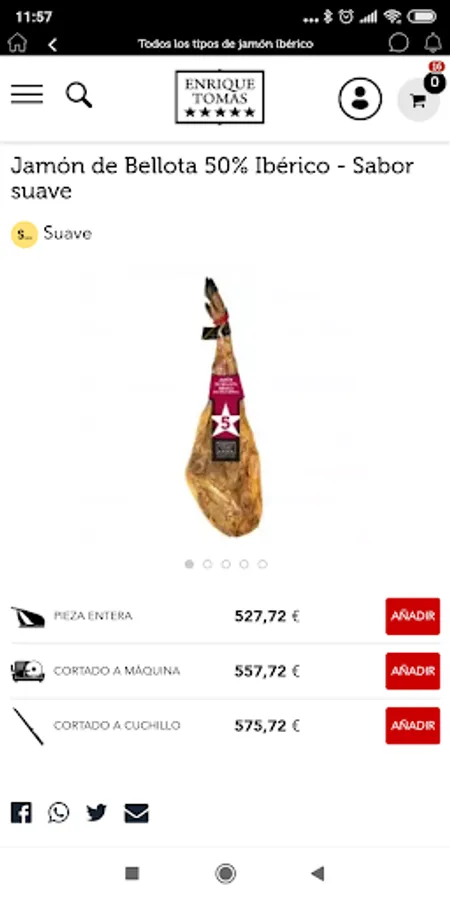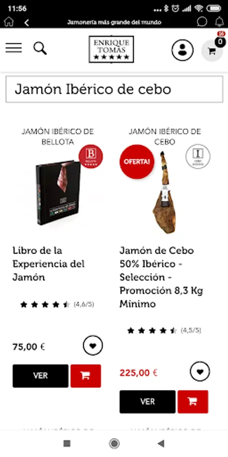 In the new App of Enrique Tomás you can easily access the entire online shop of the best Jamón Ibérico in the world. The Jamón Ibérico is one of the most representative products of Spain. Thus, in Enrique Tomás we want this gastronomic wonder to reach the hands of all the people who want to enjoy the unique flavor of the Jamón Ibérico.