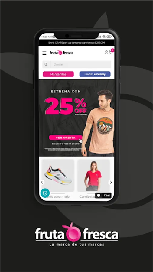 With the new Fruta Fresca app, you will have access to a wide catalog of new collection products, as well as purchases with discounts and exclusive offers for you. Find items like: sneakers, jeans, t-shirts, shirts, skirts, dresses and more. It also surprises with accessories such as: perfumes, watches, glasses, bags, wallets, among others.