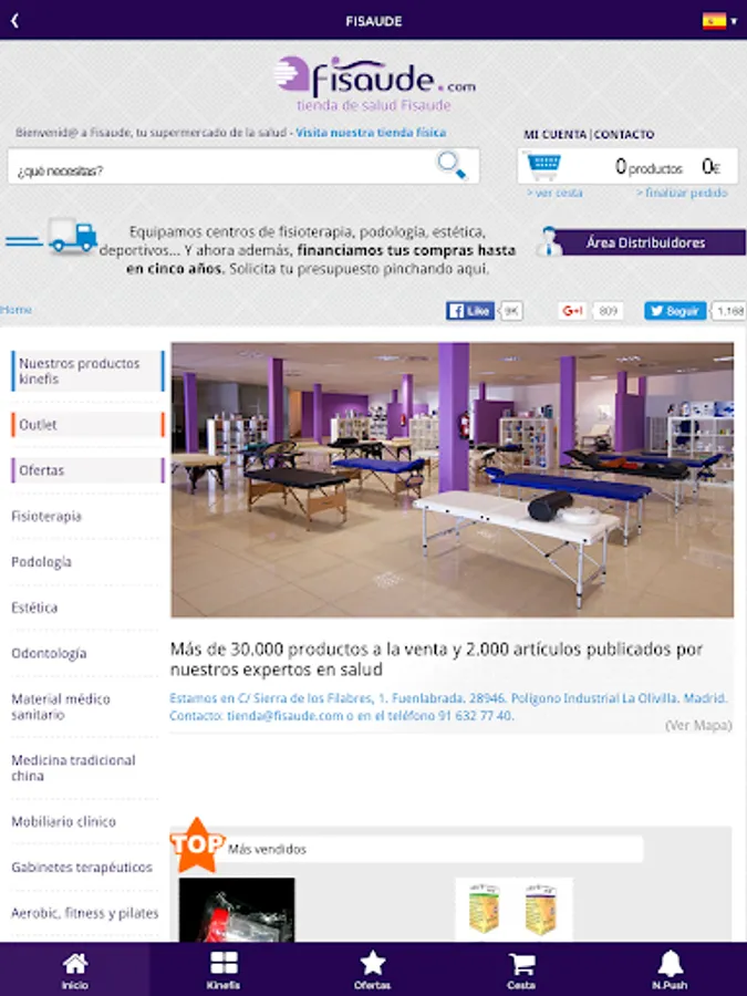 With over eight years in the health market, Fisaude is a store with 30,000 products on sale themed as varied as physiotherapy, podiatry, cosmetic dentistry, medical supplies, traditional Chinese medicine, clinical furniture, equipment aerobics, fitness and pilates, orthopedic equipment, quality of life, rest, nutrition ...