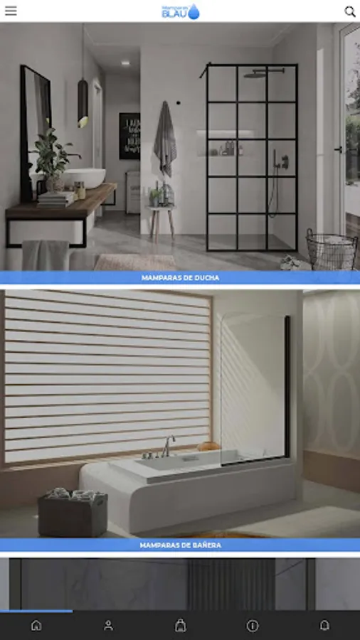 With the Mamparas Blau application you can buy all the products for your bathroom, shower screens, bathtub screens, faucets of all kinds, shower trays, bathroom furniture, bathroom accessories, sinks, mirrors and more, in a quick way And simple. Download the app and you will access the best offers and discounts directly on your device, without leaving home in a single click.