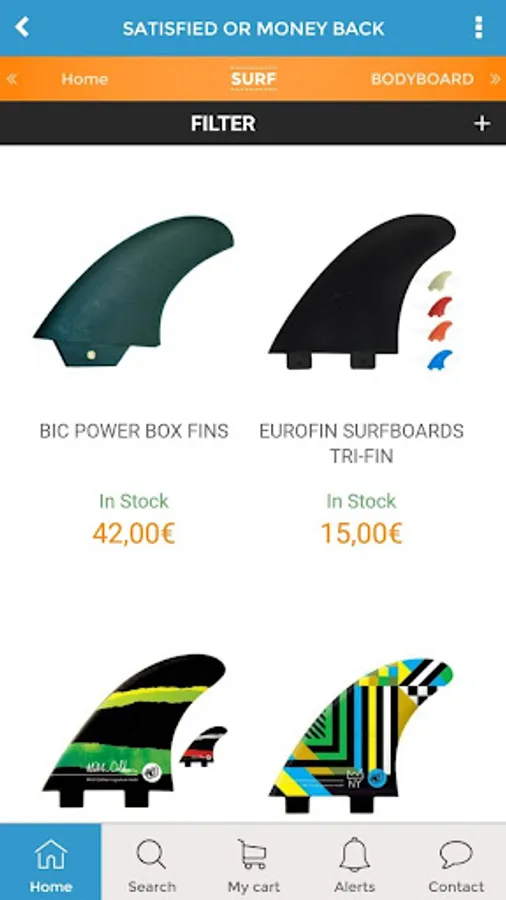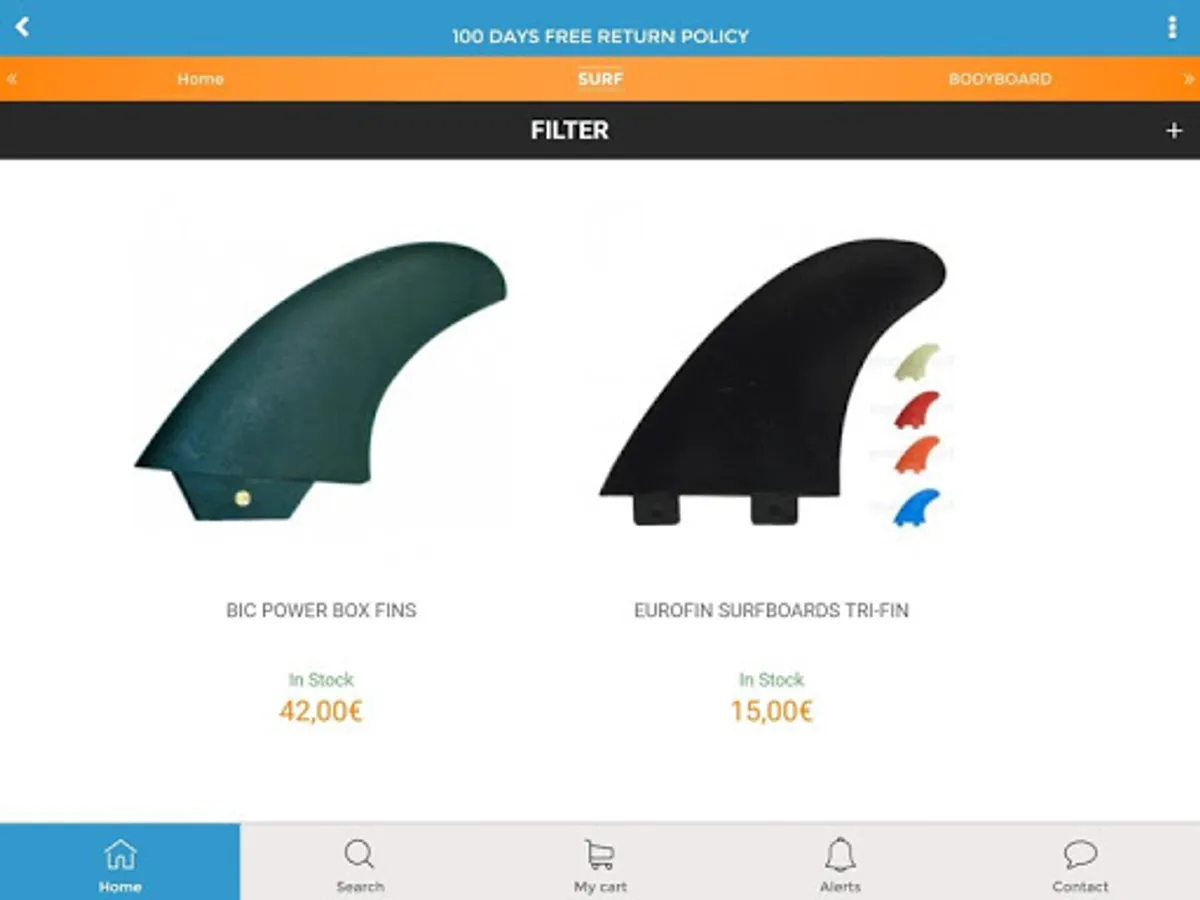 On the Mundo-surf app, you'll find everything you need for surfing and bodyboarding, as well as all related accessories and clothing. We have more than 2,500 products in stock, with the best brands of surfboards, bodyboards, wetsuits, surfboard covers, fins, traction pad, leashes, accessories, surfwears, all the raw materials to build your own surfboard, and much more.